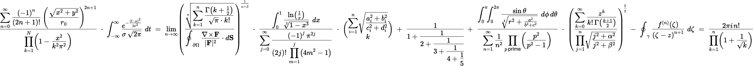 Fromulo supports the complete LaTeX math notation standard — over 800 commands across 25+ categories including fractions, integrals, matrices, set theory, logic, Greek letters, arrows, accents, and much more.
